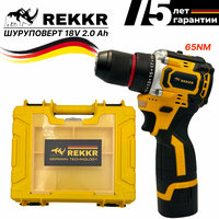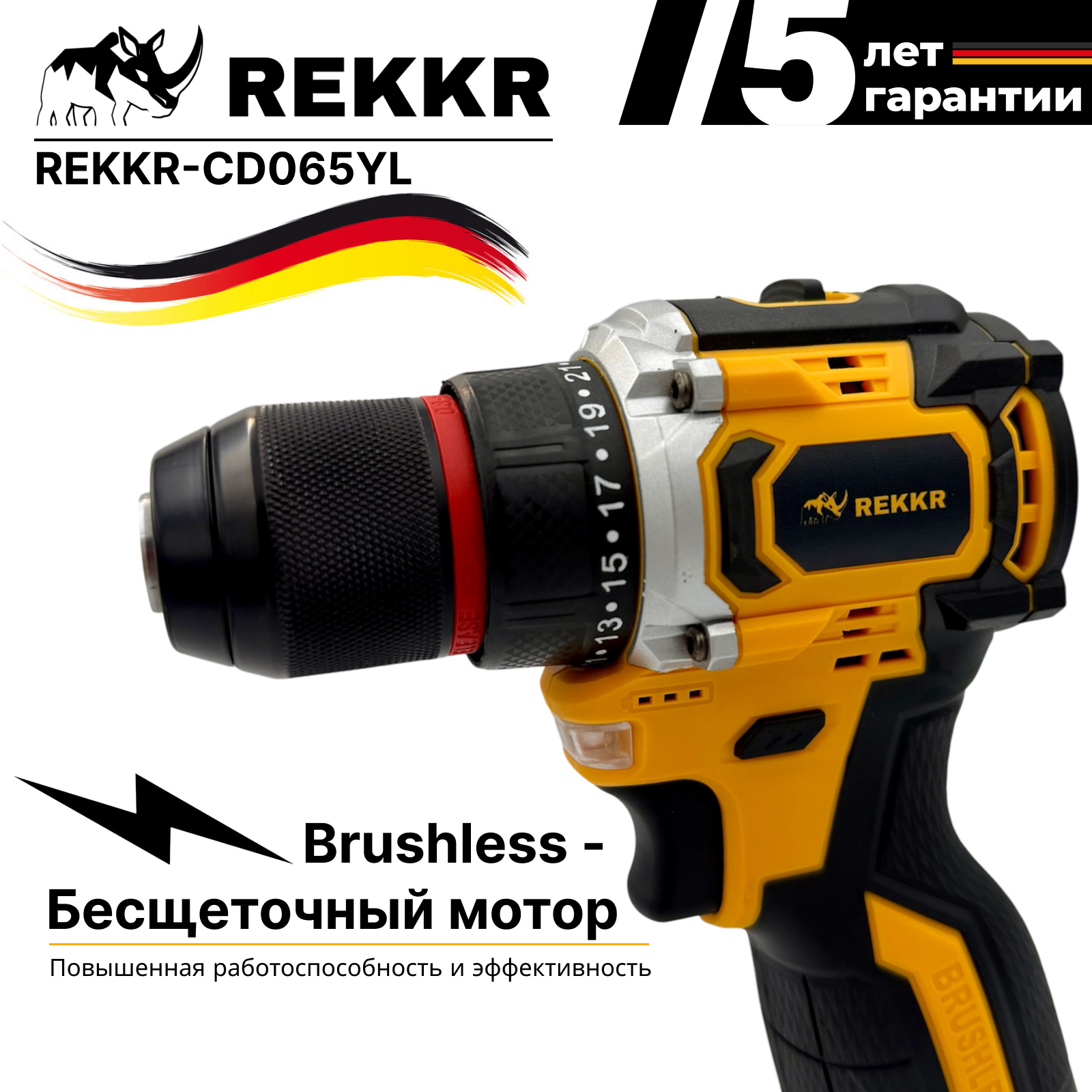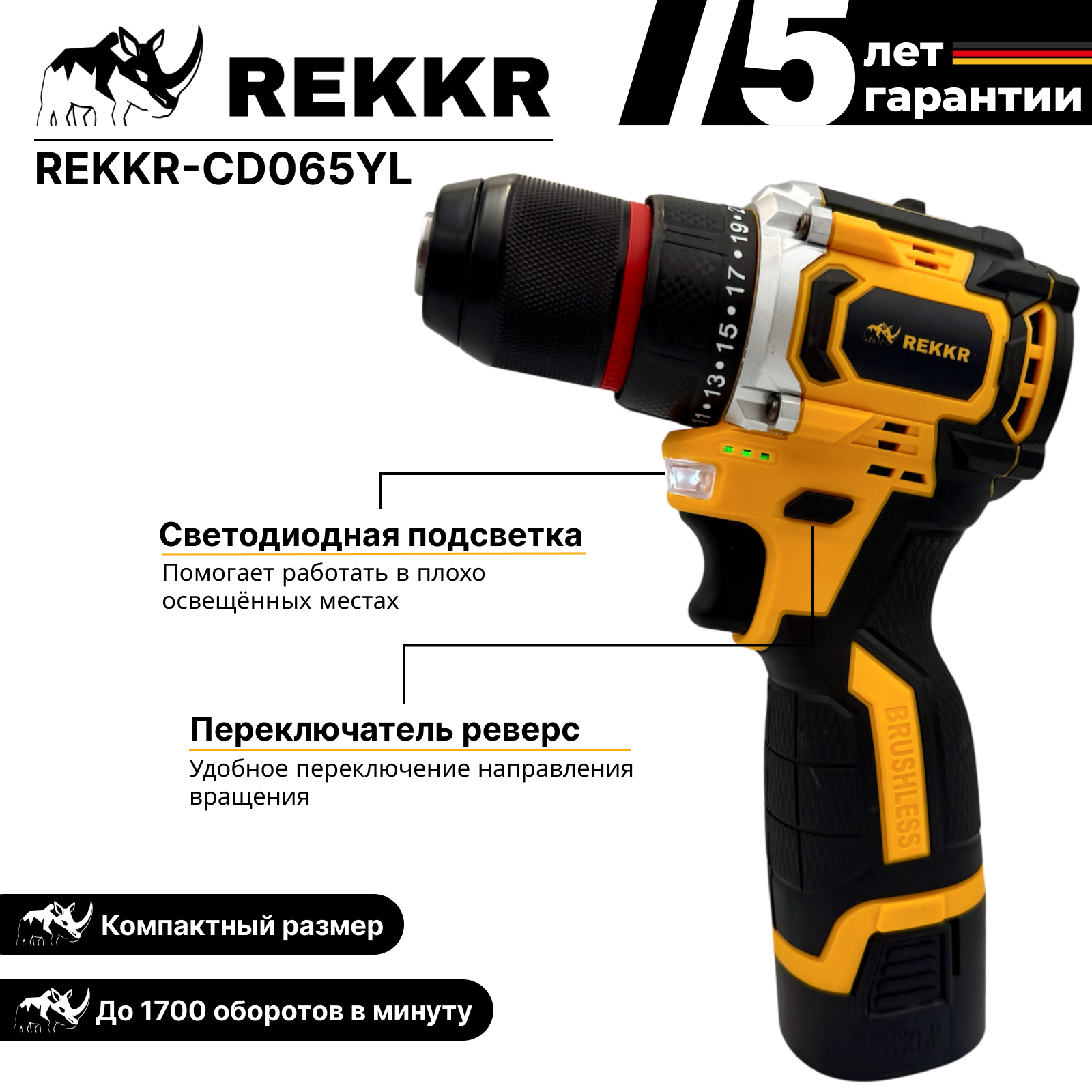Дрель-шуруповерт бесщеточный REKKR CD065YL, 65Нм, 2 аккумулятора 18В 2.0Ач, железный патрон 10мм, кейс, зарядка: сравнение цен, характеристики, фото, актуальное наличие и цены.