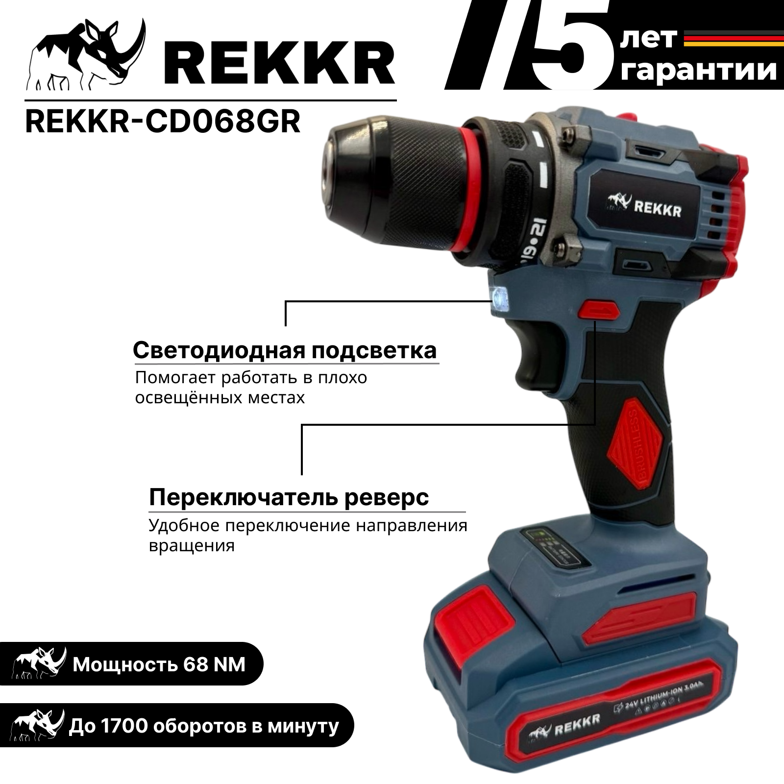 Дрель-шуруповерт бесщеточный REKKR CD068GR, 68Нм, 2 аккумулятора 24В 3.0Ач, патрон 10мм, кейс, зарядка: сравнение цен, характеристики, фото, актуальное наличие и цены.