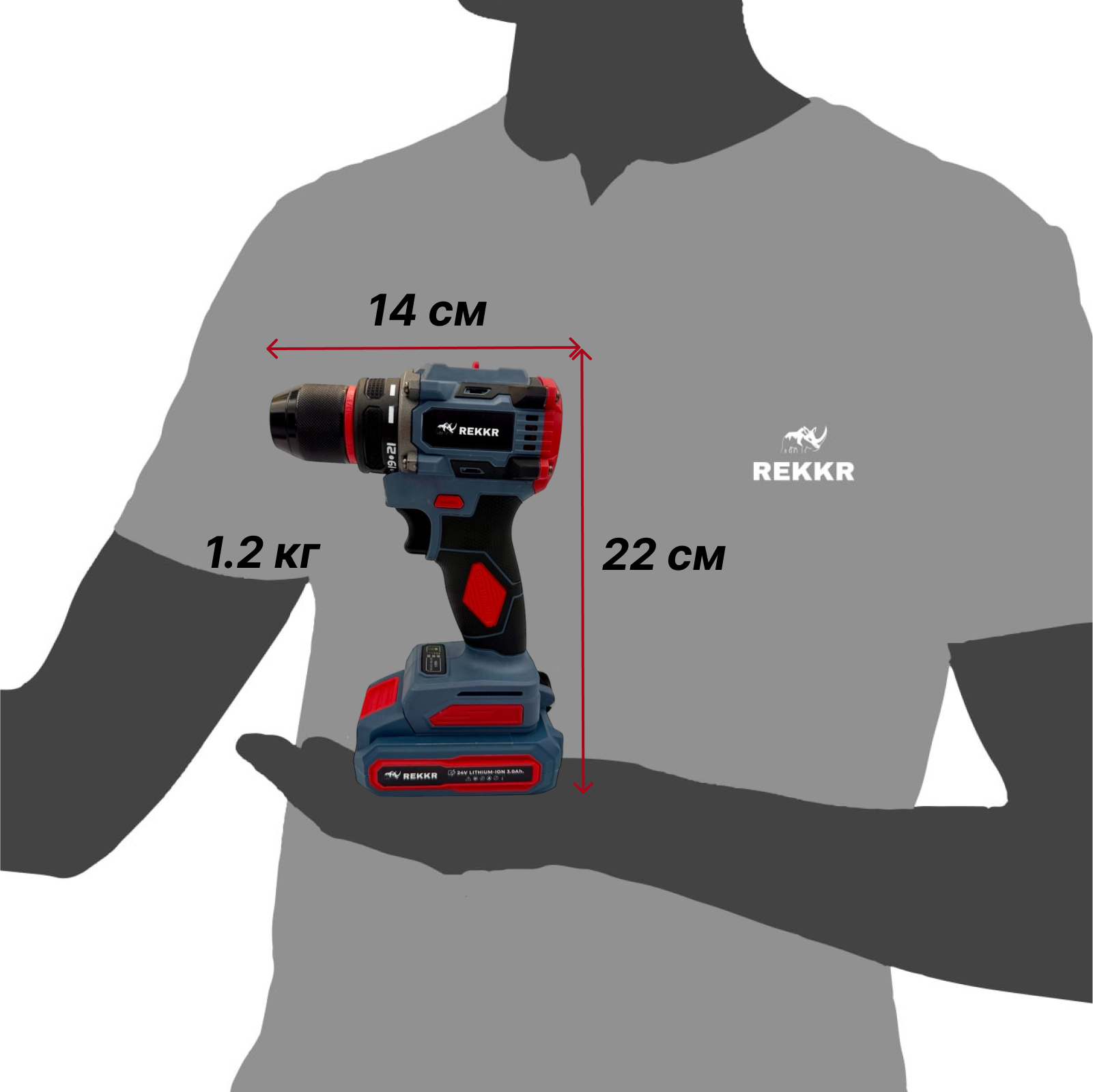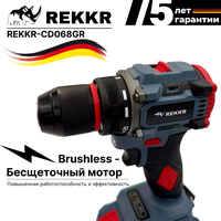 Купить Дрель-шуруповерт бесщеточный REKKR CD068GR, 68Нм, 2 аккумулятора 24В 3.0Ач, патрон 10мм, кейс, зарядка с доставкой по всей России.