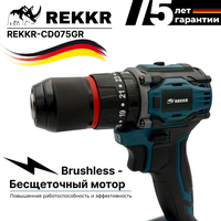 Купить Дрель-шуруповерт бесщеточный REKKR CD075GR, 75Нм, 2 аккумулятора 24В 3.0Ач, железный патрон 13мм, кейс, зарядка с доставкой по всей России.