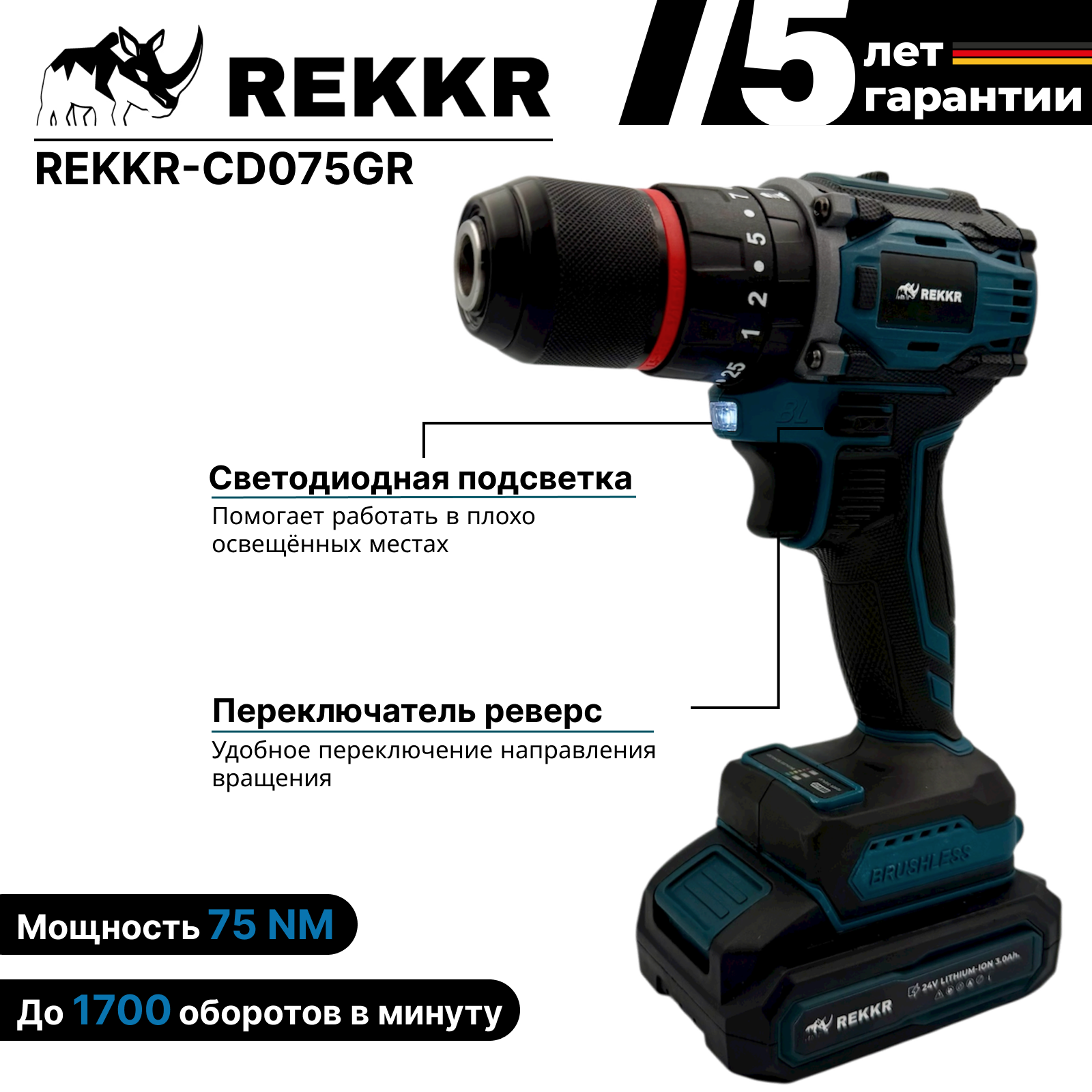 Дрель-шуруповерт бесщеточный REKKR CD075GR, 75Нм, 2 аккумулятора 24В 3.0Ач, железный патрон 13мм, кейс, зарядка: сравнение цен, характеристики, фото, актуальное наличие и цены.