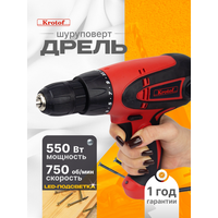 Купить Дрель-шуруповерт электрическая Krotof DS-550, от сети, 550 Вт, 750 об/мин / кротоф с доставкой по всей России.