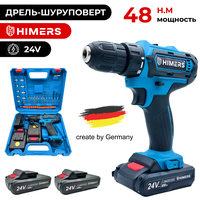 Купить Дрель — шуруповерт HIMERS DF48B аккумуляторный 24V, 2 АКБ по 3 а. ч, 48 Н. м /, кейс с доставкой по всей России.