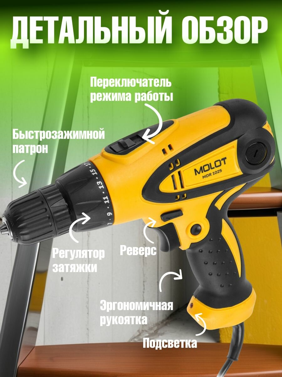 Купить Дрель-шуруповерт сетевая MOLOT MDR 1025 быстрозажимной патрон (0323330) с доставкой по всей России. Дрель-шуруповерт сетевая MOLOT MDR 1025 быстрозажимной патрон (0323330): сравнение цен, характеристики, фото, актуальное наличие и цены.