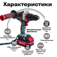 - Двухскоростной планетарный редуктор позволяет использовать один инструмент, как два: дрель и шуруповерт