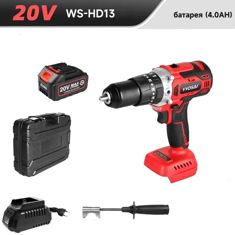 Купить Дрель-шуруповерт ударная аккумуляторная WOSAI WS-HD13 20V АКБ 4.0AH, 1 АКБ, 125Нм с кейсом с доставкой по всей России.