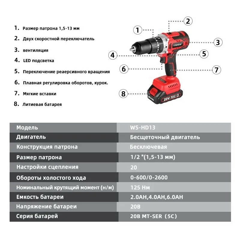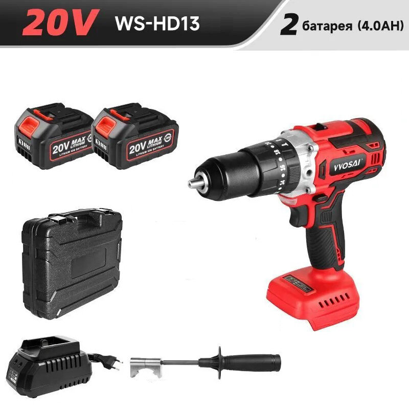 Дрель-шуруповерт ударная аккумуляторная WOSAI WS-HD13 20V АКБ 4.0AH, 2 АКБ, 125Нм с кейсом: сравнение цен, характеристики, фото, актуальное наличие и цены.