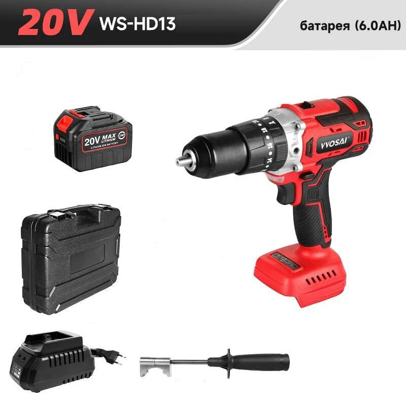 Дрель-шуруповерт ударная аккумуляторная WOSAI WS-HD13 20V АКБ 6.0AH, 1 АКБ, 125Нм с кейсом: сравнение цен, характеристики, фото, актуальное наличие и цены.