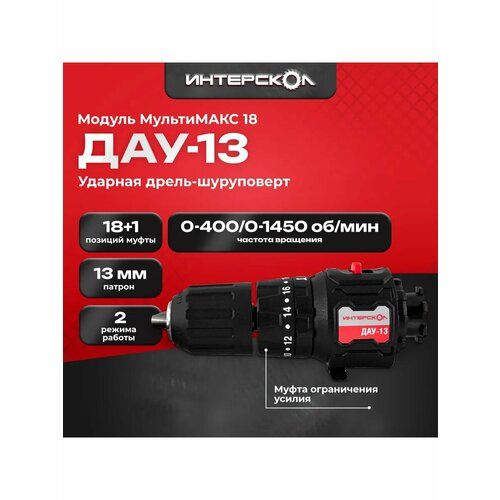 - Блокировка шпинделя и двухмуфтовый 13 мм патрон