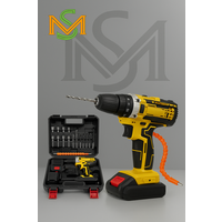 Купить Дрель-шуруповерт желтый с двумя аккумуляторами 2А, с набором и кейсом в комплекте с доставкой по всей России.