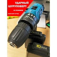 Купить Дрель-шуруповёрт 18v АКБ с индикацией, ударный, быстрозажимной патрон. 42 Нм. Кейс набор оснастки с доставкой по всей России.