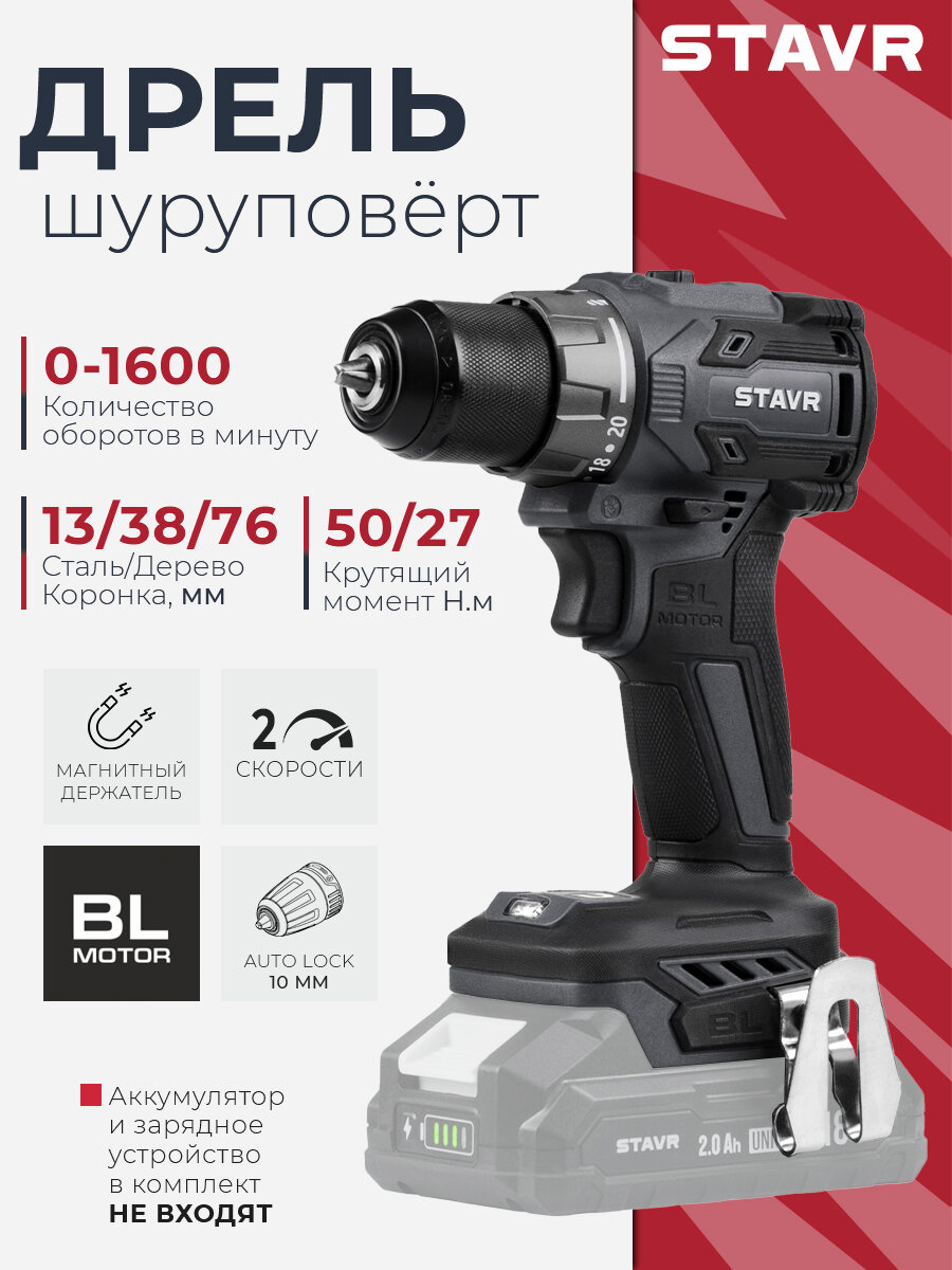 Купить Дрель-шуруповёрт 18V UNI-M, 50 Нм, BL, 10 мм STAVR SDD 18BL (без АКБ и ЗУ) с доставкой по всей России.