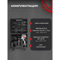 | Особенности конструкции | блокировка кнопки включения, гнездо в корпусе для крепления бит, лампа точечной подсветки, предохранительная муфта, прорезиненная рукоятка, фиксация шпинделя |