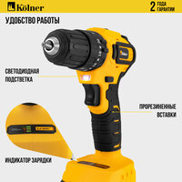 Ударная дрель-шуруповерт Kolner KCD 20/2BLC (с 2-мя АКБ, кейс, оснастка)