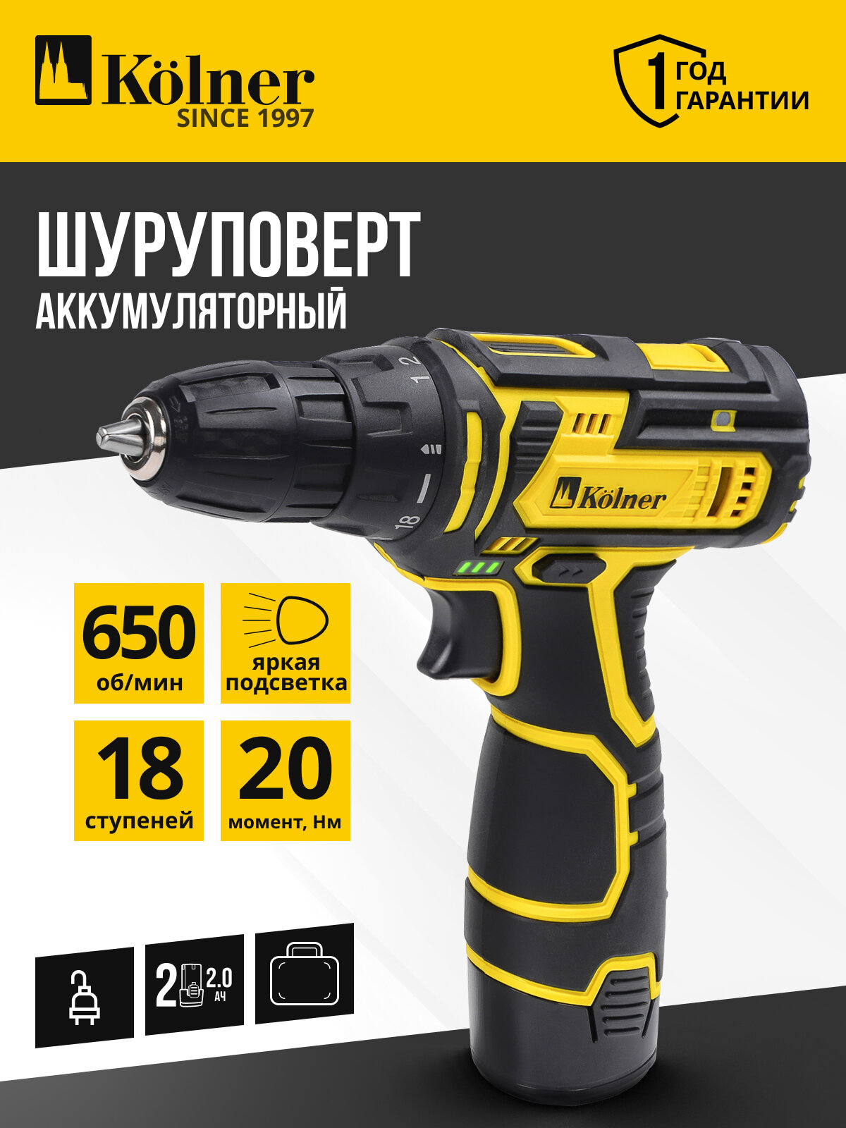 Купить Дрель-шуруповёрт Kolner KCD12-2LС, 1,8 кг, 2 аккумулятора, Li-ion с доставкой по всей России. Дрель-шуруповёрт Kolner KCD12-2LС, 1,8 кг, 2 аккумулятора, Li-ion: сравнение цен, характеристики, фото, актуальное наличие и цены.