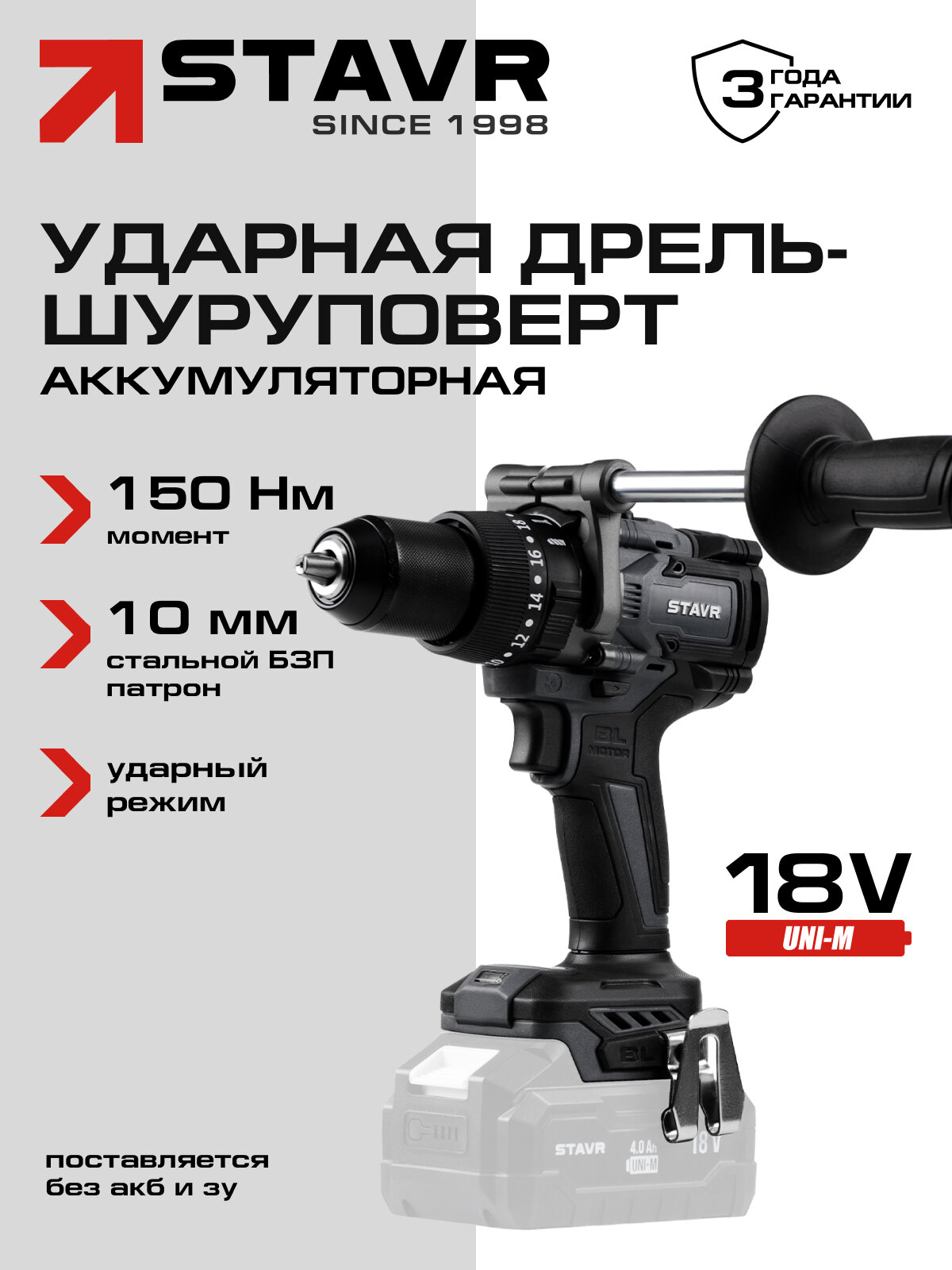 Купить Дрель-шуруповёрт ударная аккумуляторная STAVR SHD 18BLHD (Без аккумулятора и ЗУ) с доставкой по всей России.