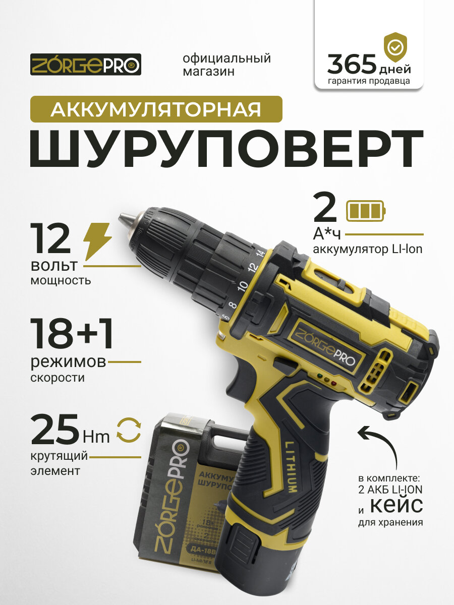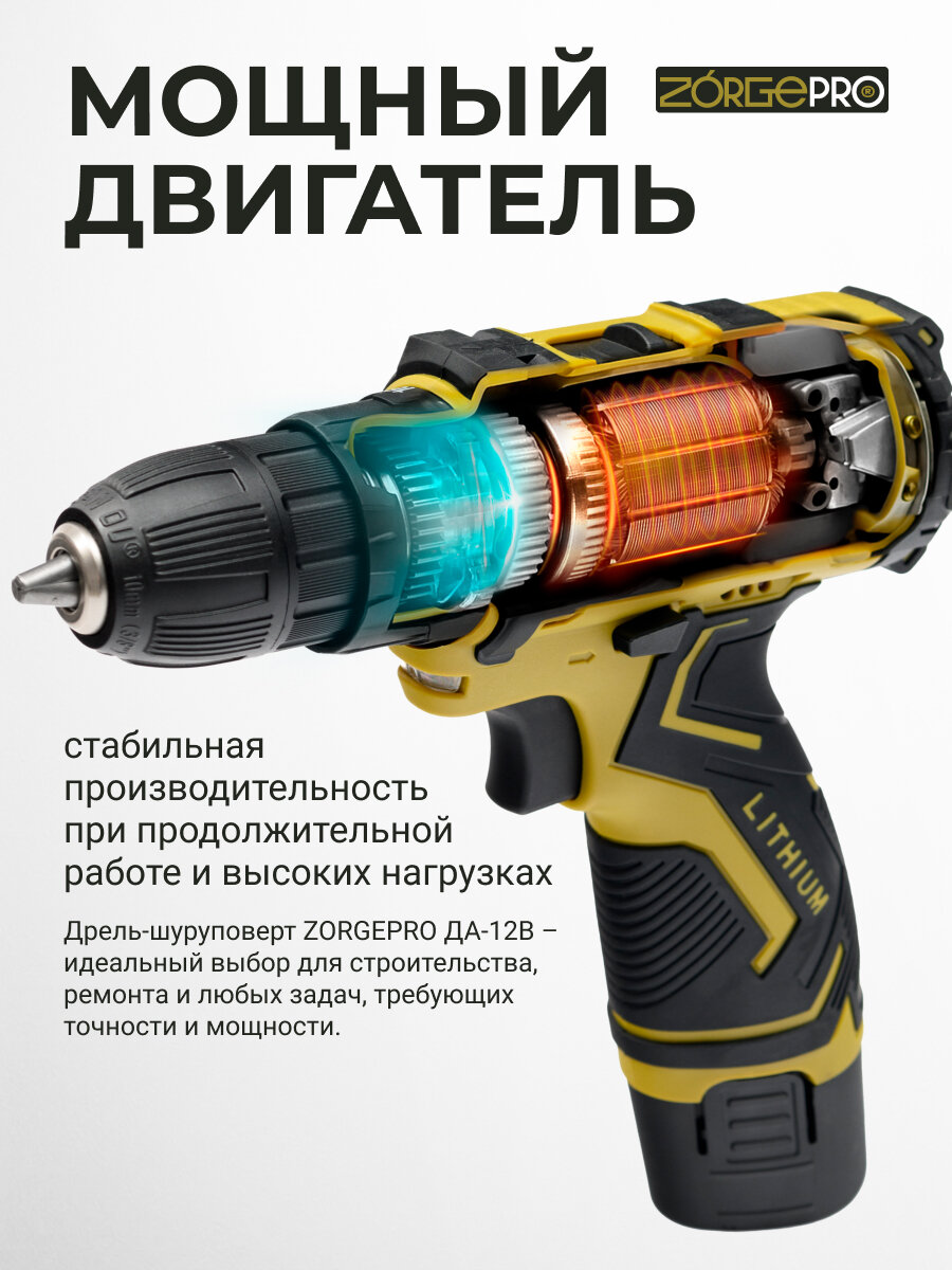 Дрель-шуруповёрт ZORGEPRO, ДА-12, Li-ion, 12В, 2 аккумулятора, 2Ач, быстрозажимной патрон: сравнение цен, характеристики, фото, актуальное наличие и цены.