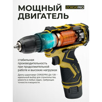 Купить Дрель-шуруповёрт ZORGEPRO, ДА-12, Li-ion, 12В, 2 аккумулятора, 2Ач, быстрозажимной патрон с доставкой по всей России.