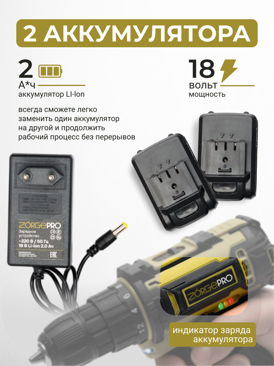 Купить Дрель-шуруповёрт ZORGEPRO, ДА-18V, 18В, Li-Ion, 2 аккумулятора, кейс с доставкой по всей России. Дрель-шуруповёрт ZORGEPRO, ДА-18V, 18В, Li-Ion, 2 аккумулятора, кейс: сравнение цен, характеристики, фото, актуальное наличие и цены.