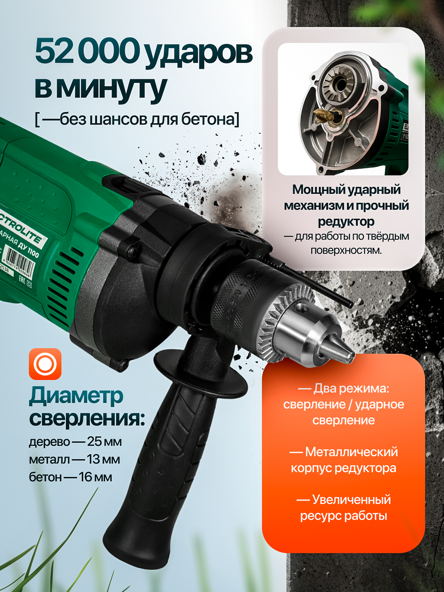 Дрель ударная Electrolite ДУ 1100, ключевой патрон, серая, 1100Вт, 2800 об/мин: сравнение цен, характеристики, фото, актуальное наличие и цены.