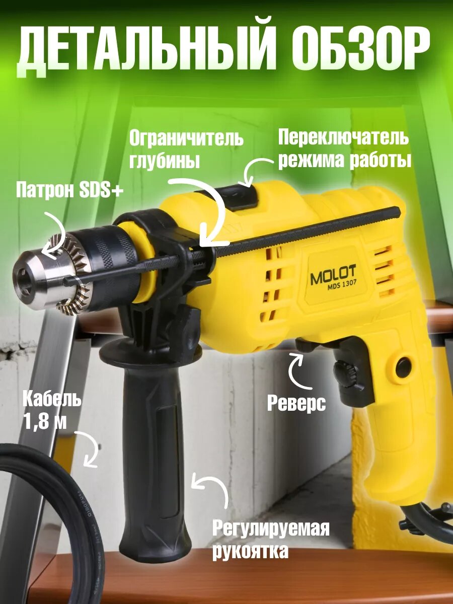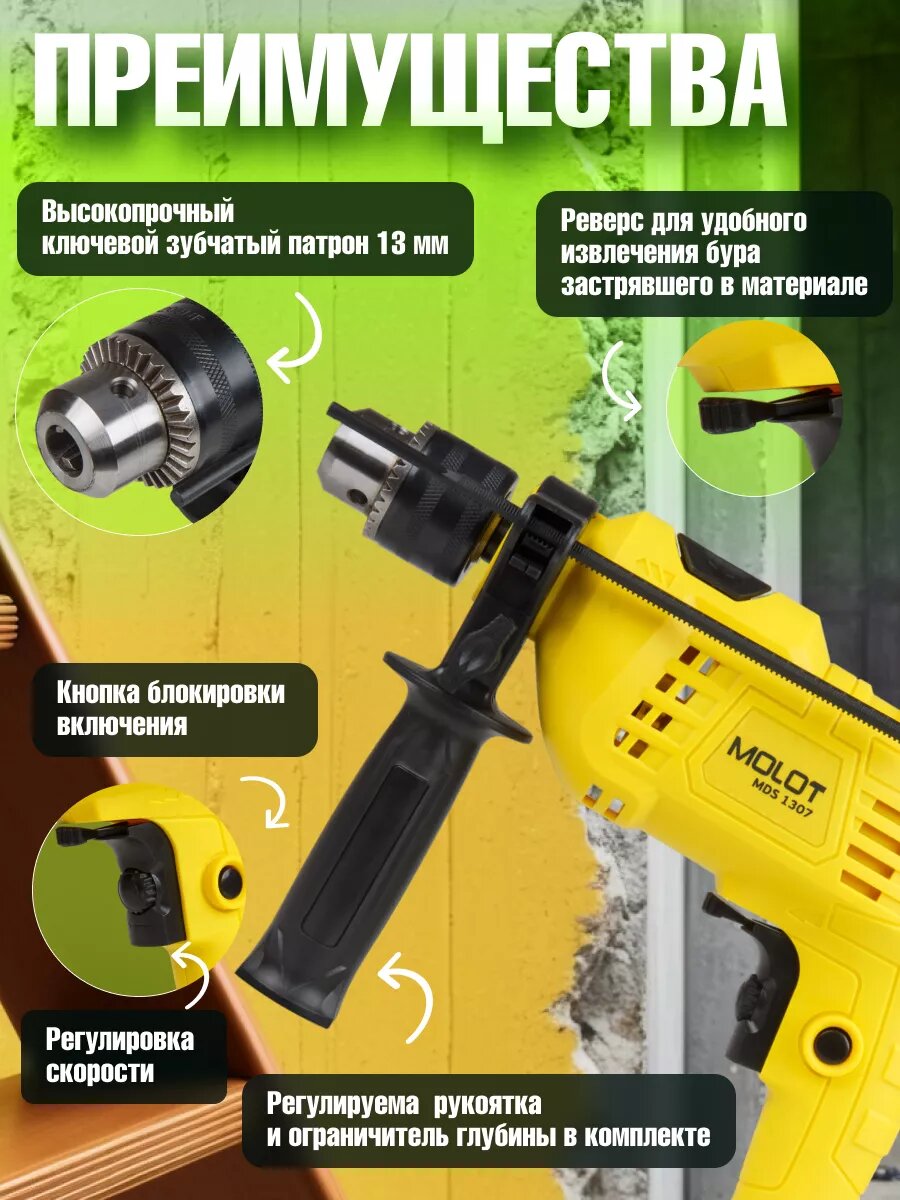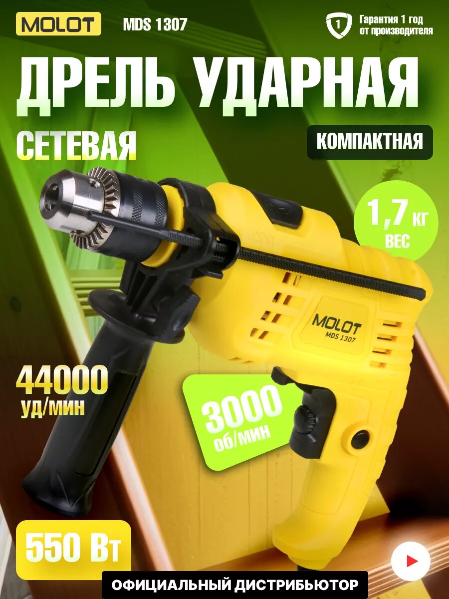 Купить Дрель ударная электрическая MOLOT MDS 1307, 550 Вт, 1 скорость (MDS130700029) с доставкой по всей России.