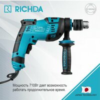 Купить Дрель ударная RICHDA RHDZ1302 710ВТ регулировка оборотов от 0 до 3000 об./мин металлический патрон 1,5-13 мм с доставкой по всей России.
