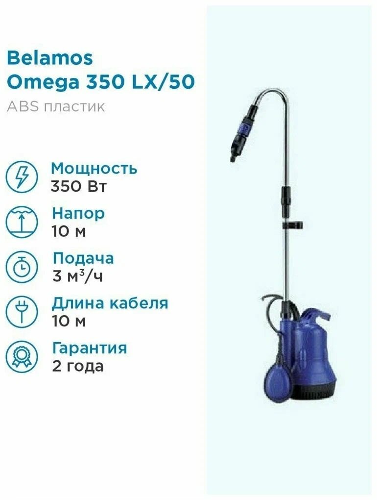 Погружной насос Omega 350 LX/50л. м, Н10м, каб. 10м