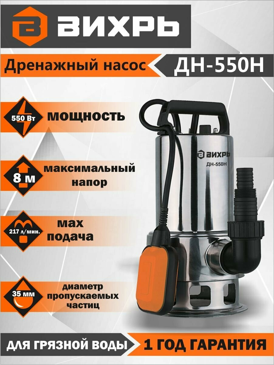 Дренажный насос ДН-550Н Вихрь, ( для грязной воды (частицы до 35мм) / 217 л/мин): сравнение цен, характеристики, фото, актуальное наличие и цены.