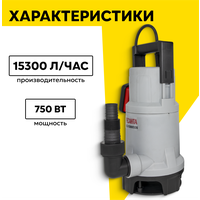 Дренажный насос Ресанта НД-15300П/35, 750 Вт, макс. напор – 8 м, 15300 л/час, для грязной воды