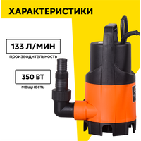 Купить Дренажный насос, Вихрь ДН-133/5, 350 Вт, макс. напор – 5 м, 133 л/мин, для грязной воды, диаметр частиц – 35 мм с доставкой по всей России.