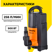 Дренажный насос Вихрь ДН-258/8 ВП, 900 Вт, макс. напор – 8 м, 258 л/мин, для грязной воды: сравнение цен, характеристики, фото, актуальное наличие и цены.