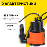 Купить Дренажный насос вихрь ДН-300, 300 Вт, макс. напор – 7.5 м, 133 л/мин, для чистой воды с доставкой по всей России.