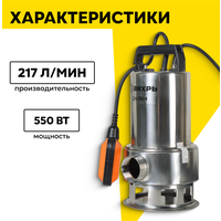 Дренажный насос, вихрь ДН-550Н, 550 Вт, напор 8 м, 217 л/мин, для грязной воды: сравнение цен, характеристики, фото, актуальное наличие и цены.