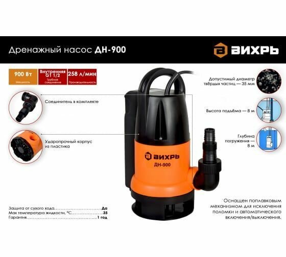 Купить Дренажный насос Вихрь ДН-900 с доставкой по всей России.
