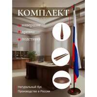 В набор водит сборно-разборная конструкция состоящая из: древка для флага, подставки для древка на 1 отверстие, навершия. Цвет: темные орех, материал: бук.