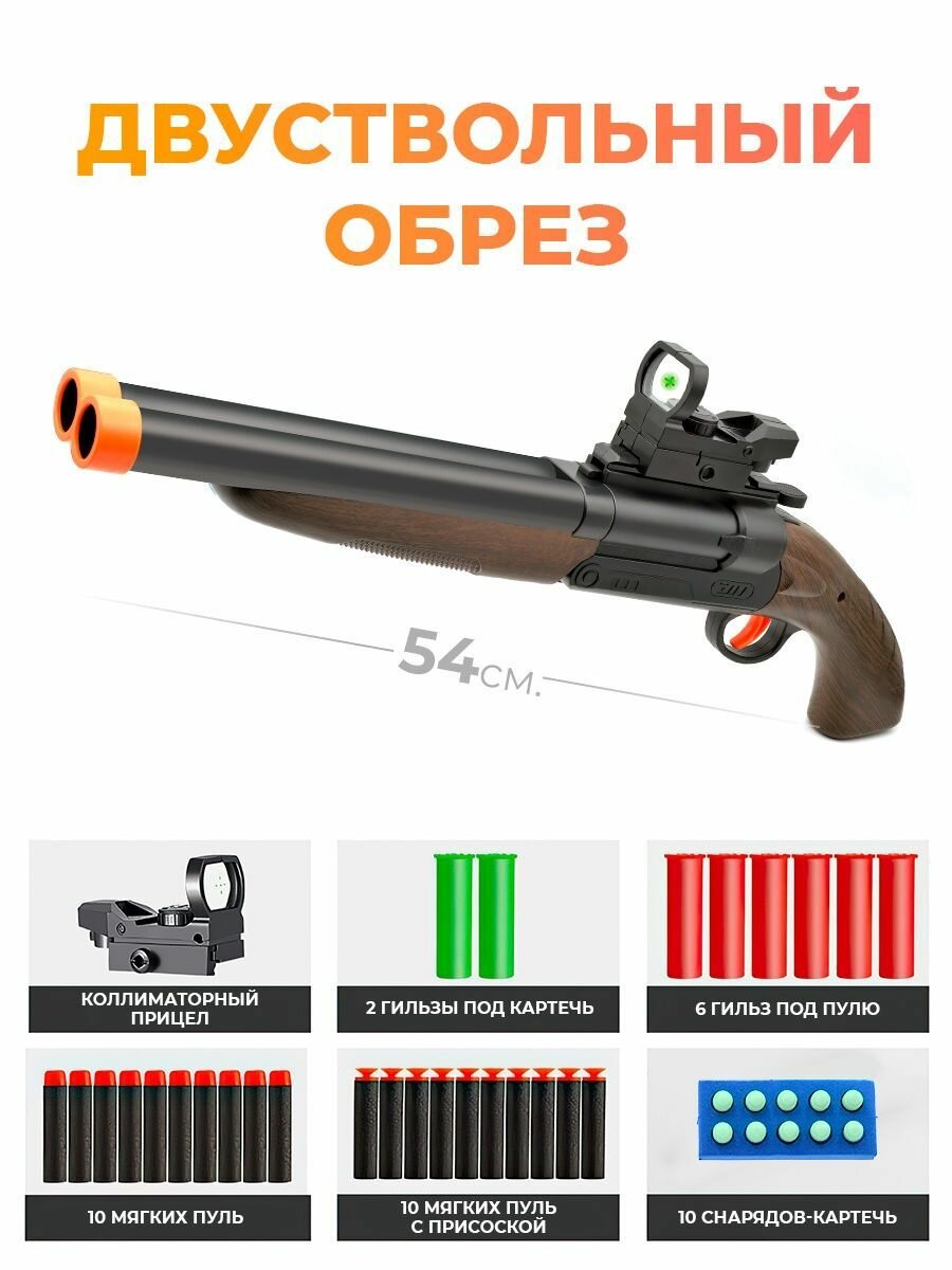 Купить Дробовик /Игрушка с мягкими пулями и гильзами — Двуствольный обрез дробовика / Отлетающие гильзы с доставкой по всей России. Дробовик /Игрушка с мягкими пулями и гильзами — Двуствольный обрез дробовика / Отлетающие гильзы: сравнение цен, характеристики, фото, актуальное наличие и цены.