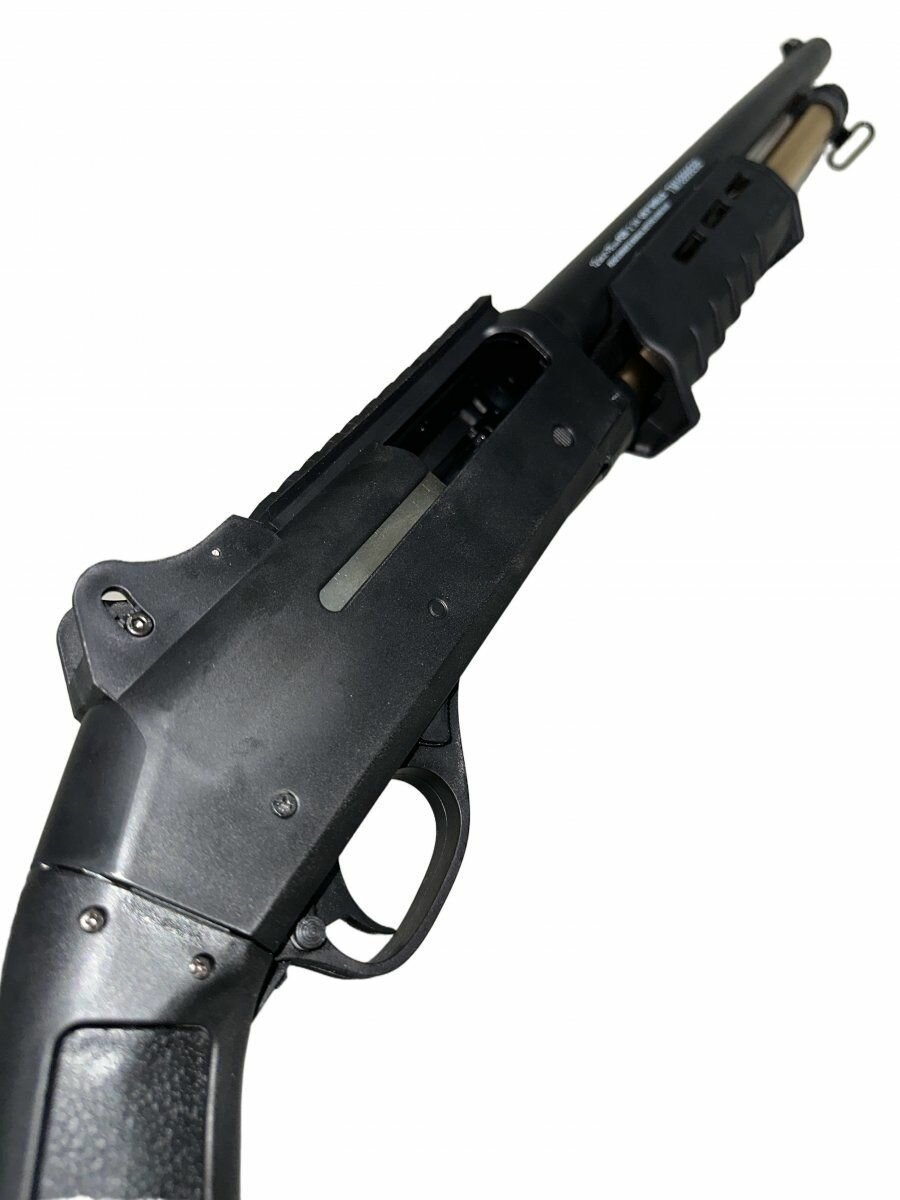 Особенность данной модели является полная имитация настоящего дробовика. Мягкими поролоновыми, с присосками и тупыми наконечниками (стрелы как у NERF).