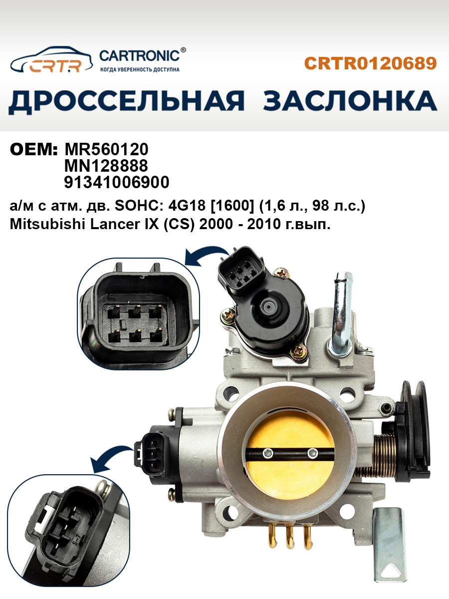 Купить Дроссельная заслонка Mitsubishi Lancer IX (ОЕМ: MR560120, MN128888) — Cartronic CRTR0120689 с доставкой по всей России. Дроссельная заслонка Mitsubishi Lancer IX (ОЕМ: MR560120, MN128888) — Cartronic CRTR0120689: сравнение цен, характеристики, фото, актуальное наличие и цены.