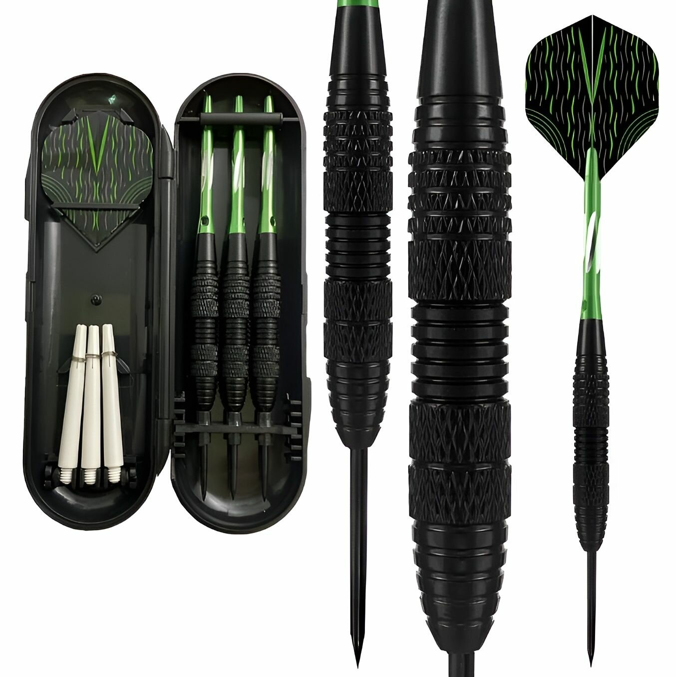 Крепкие и качественные профессиональные дротики являются главной частью игры в дартс. Комплект состоит из 3 дротиков изготовленных из нержавеющей стали весом 24 грамма, оперение - пластик ПВХ. Конструкция из 3 частей позволяет заменить хвостовик и оперение после износа. Материал барреля: латунь. Дротики поставляются в пластиковом кейсе, который можно использовать для хранения и для транспортировки. Также дротики могут служить отличным подарком!