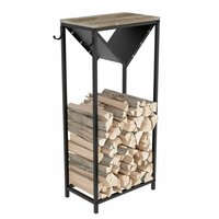 Стильная дровница в стиле лофт впишется в любое пространство. Элегантный минималистичный дизайн, удобная форма, полочка для щепы. Полка изготовлена из ЛДСП от фирмы Ламарти оттенок Намибия. Основание стальное с порошковой покраской. Габариты дровницы: высота - 110 см, ширина - 50 см, глубина - 30 см. Есть 2 крючка для аксессуаров.
