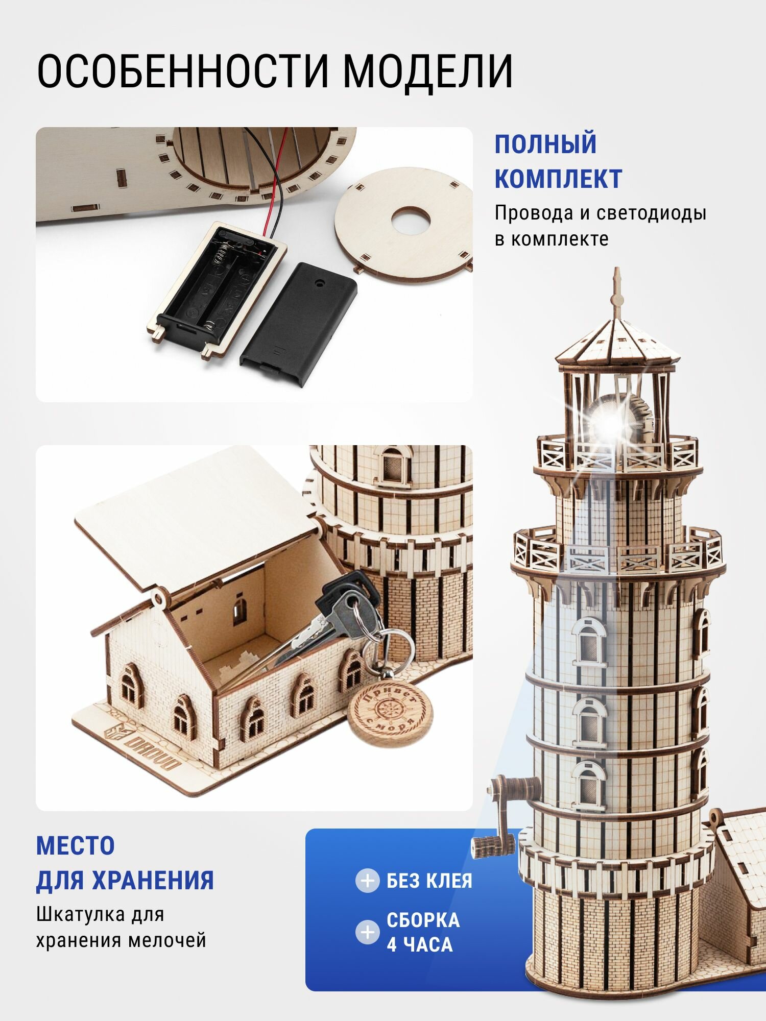 Купить DROVO деревянный конструктор Светильник Маяк «Бриз», сборная модель, 274 элемента с доставкой по всей России.