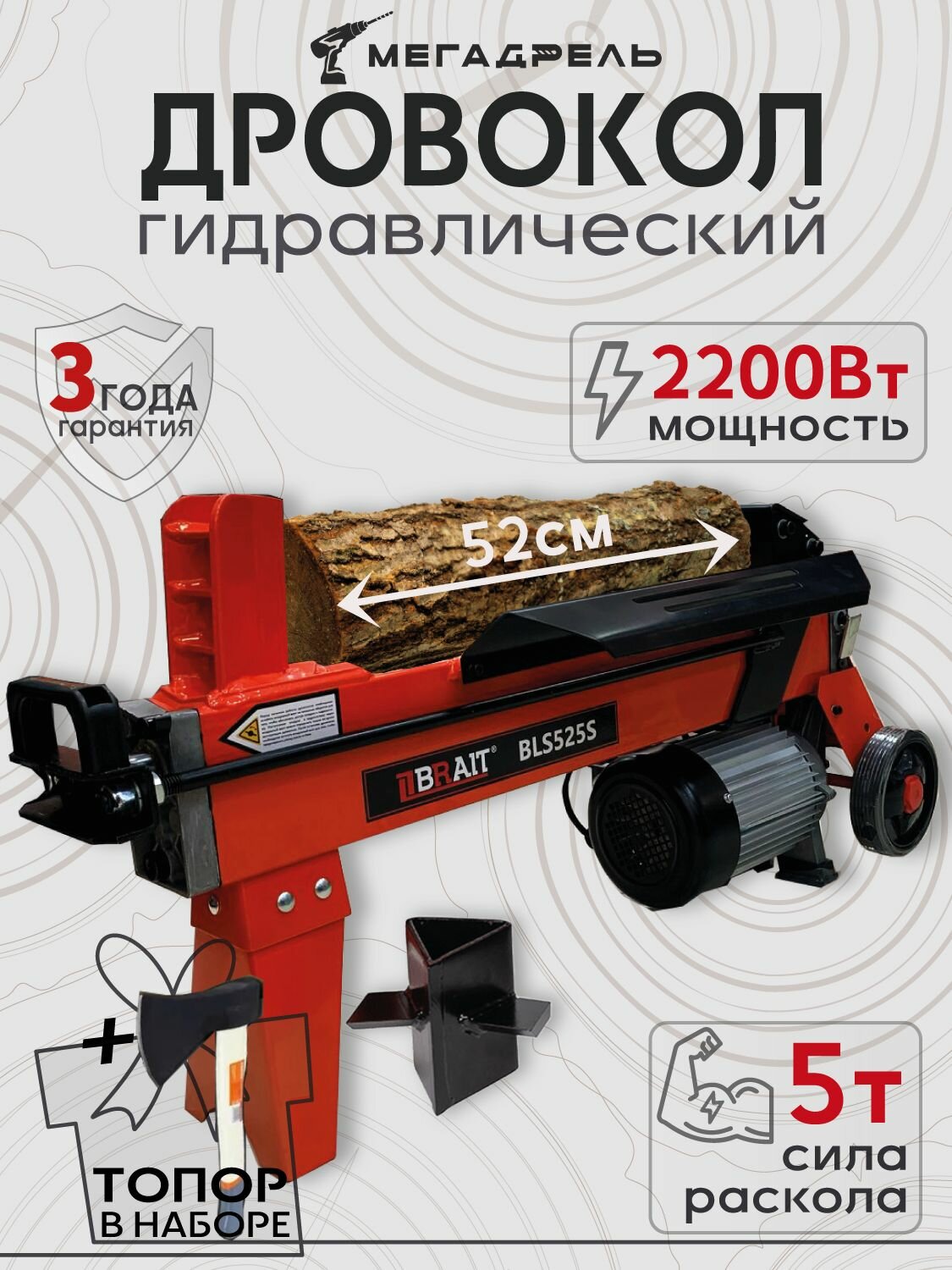 Дровокол электрический 2200ВТ BRAIT BLS52 c насадкой и стойкой (PRO)+топор/ Дровокол горизонтальный / колун электрический: сравнение цен, характеристики, фото, актуальное наличие и цены.