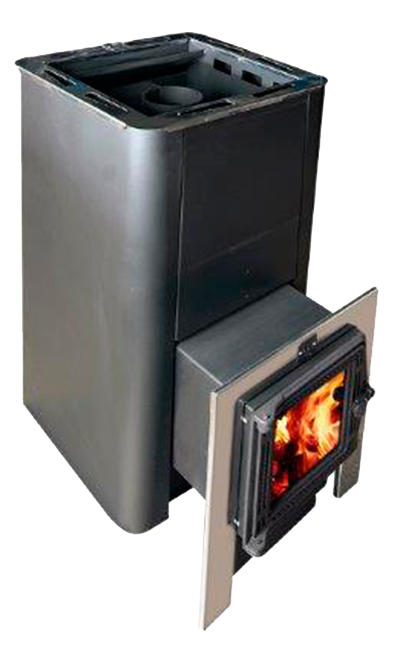 Купить Дровяная печь–каменка Термофор «Олимп» 14-18 (чугунная дверца со стеклом+парогенератор) диаметр дымохода: 115 мм с доставкой по всей России.