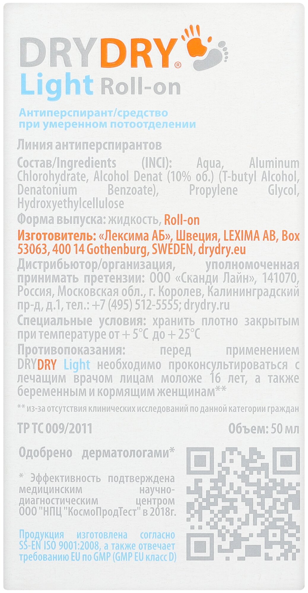 Купить Dry dry / Dry dry DE light антиперспирант/средство при умеренном потоотделении 50 мл с доставкой по всей России.
