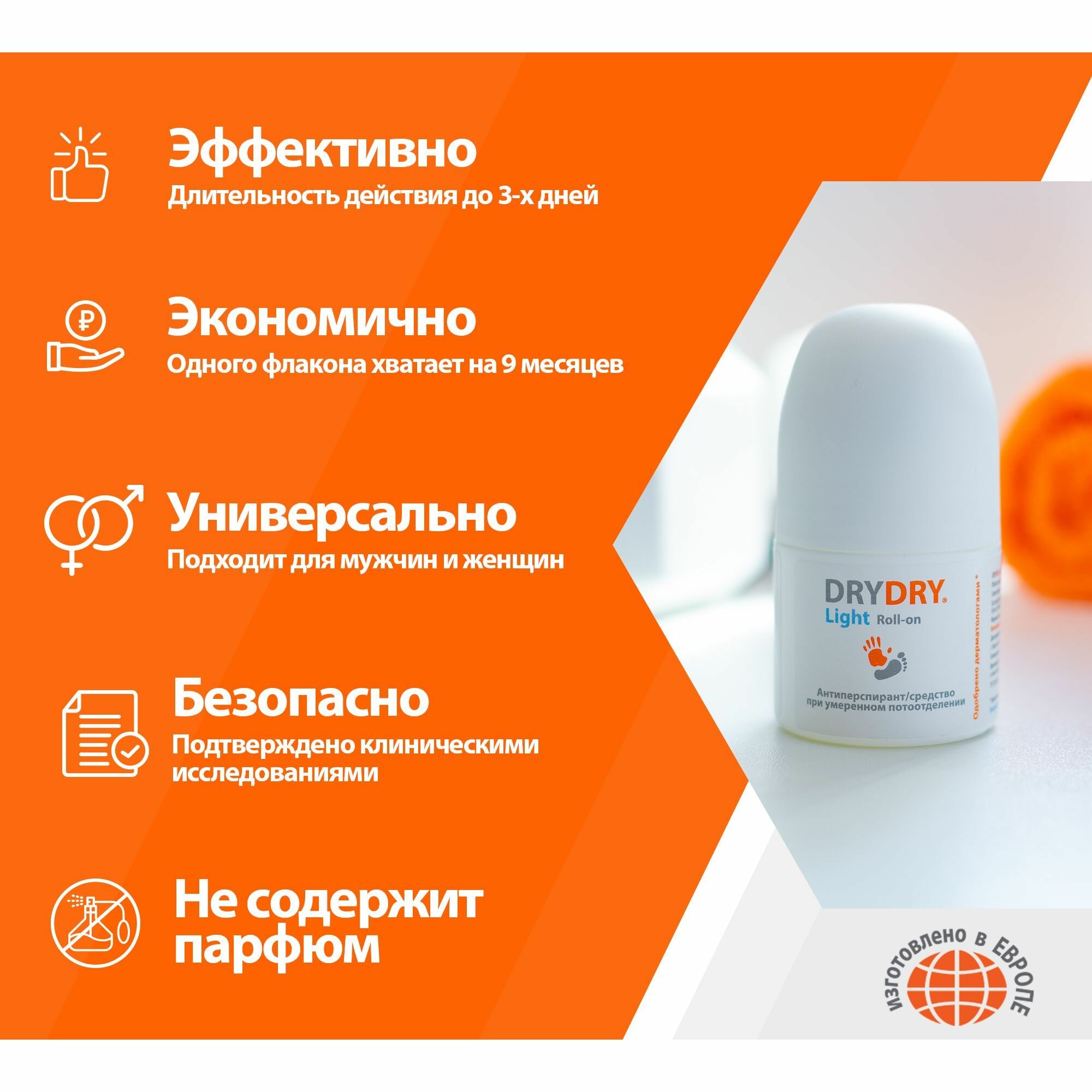 DRYDRY Light (драйдрай Лайт) - эффективное средство от потоотделения для всех типов кожи