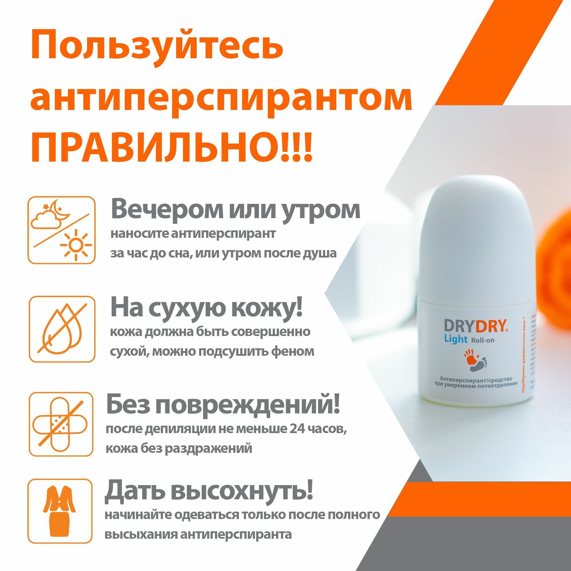 Дезодорант DRYDRY Light не имеет ограничений по длительности и частоте использования