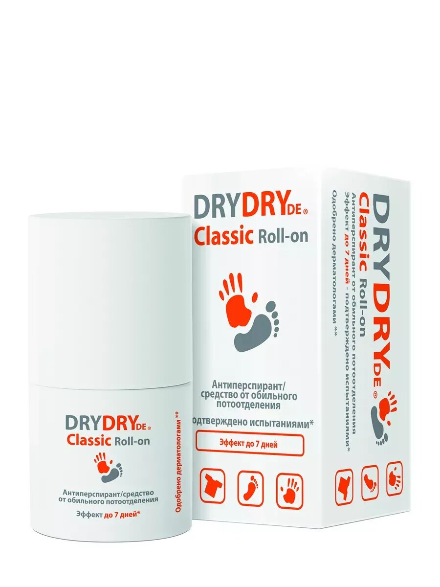 DRYDRY Classic Roll-on (драйдрай Классик Ролл-он) - эффективное средство длительного действия от обильного потоотделения В основе действия средства лежит «блок» пор посредством формирования алюминиево-белкового комплекса. Радиоизотопный анализ показал, что активные компоненты не нарушают функции потовых желез. В результате «блока» происходит перенаправление выделения пота через поры других участков тела. Эффективность защиты от пота напрямую связана с такими показателями, как тип алюминиевой соли, её концентрация в продукте и уровень pH, т. е. с формулой DRYDRY Classic Roll-on. Эффективное средство от потоотделения DRYDRY Classic Roll-on оказывает антибактериальный эффект, тем самым препятствуя образованию неприятного запаха. Подходит для нанесения на ладони, ступни и в подмышечные впадины Не пачкает одежду/не оставляет ощущения липкости Подходит для мужчин и женщин Не содержит ингредиенты животного происхождения DRYDRY Classic Roll-on рекомендуется наносить на абсолютно сухую неповрежденную кожу вечером, после душа, за час до сна. Запрещено утреннее нанесение! Важно наносить средство на абсолютно сухую поверхность! Поэтому не лишним будет перед нанесением DRYDRY Classic Roll-on дополнительно протереть кожу салфеткой или полотенцем, при необходимости допускается подсушить обрабатываемую поверхность феном. После нанесения необходимо дать средству высохнуть 3-4 минуты; при необходимости допускается подсушить обрабатываемую поверхность феном. Не мочите кожу до утра. Утром - обычные водные процедуры. Во избежание возможной порчи одежды, рекомендуется смыть нанесенное вечером средство с поверхности кожи. При обильном потоотделении необходимо повторить процедуру несколько дней подряд - для достижения и закрепления максимального эффекта. Как только будет достигнут устойчивый результат, использование средства DRYDRY Classic Roll-on может быть сведено к минимуму (1-2 раза в неделю). Частота использования DRYDRY Classic зависит от степени потоотделения. Использование DRYDRY Classic Roll-on может вызвать легкое жжение или покалывание обработанных участков кожи. Причиной возникновения раздражения является, как правило, недостаточно высушенная или поврежденная кожа. Не рекомендуется наносить DRYDRY Classic Roll-on в течение 24 часов после удаления волос (бритье/эпиляция) с соответствующего участка кожи. Способ применения на ладонях и ступнях: Вымойте и тщательно высушите кожу. Нанесите средство и дайте коже высохнуть несколько минут. Не мочите кожу до утра. Утром - обычные водные процедуры. При обильном потоотделении рекомендуется повторить процедуру несколько вечеров подряд - для достижения максимального эффекта. На ладонях и ступнях кожа грубее, поэтому DRYDRY Classic Roll-on наносится чаще. Меры предосторожности: Обратите внимание, что средство является высокоэффективным из-за концентрации действующего вещества. Именно поэтому оно наносится строго на ночь, а утром его необходимо смыть, чтобы не испачкать одежду. Будьте внимательны при выборе одежды для сна и отдавайте предпочтение более свободной одежде. Избегайте контакта с глазами. В случае попадания средства в глаза промойте большим количеством воды. Не рекомендуется наносить DRYDRY Classic Roll-on в течение 24 часов после удаления волос (бритья/эпилляции) с соответствующего участка кожи. Не наносите на раздраженную или поврежденную кожу. При возникновении ж