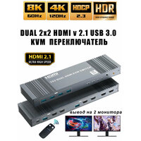 Купить DUAL MONITOR KVM переключатель HDMI, вход 2 компьютера, выход на 2 монитора, HDMI 2.1, 8К-60HZ, 4K-120Hz, USB 3.0 с доставкой по всей России.