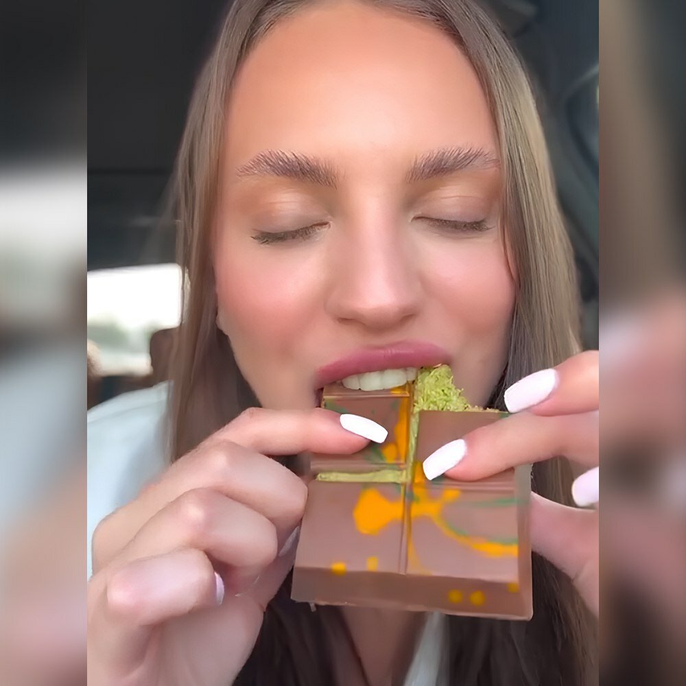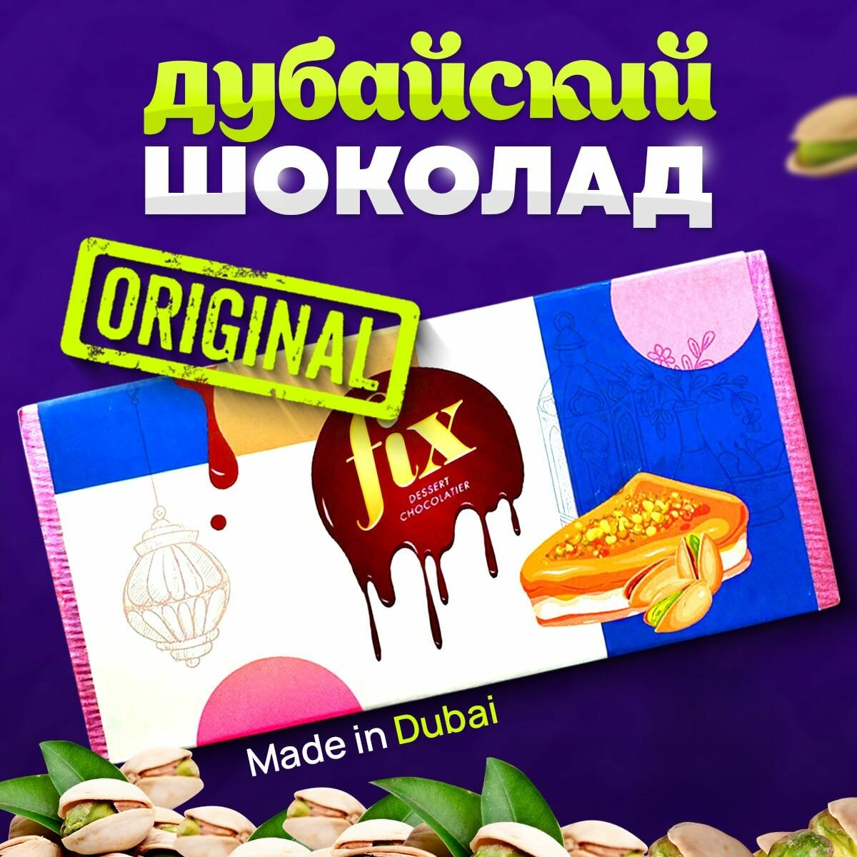 Остерегайтесь подделок! Наш товар оригинальный из Дубая имеет декларацию соответствия, что подтверждается QR- кодом на главной карточке товара, и значком " Товар проверен" Дубайский шоколад, оригинал Fix фисташка — это настоящий кулинарный шедевр, который впечатляет своей оригинальностью и гармонией вкусов. Молочный шоколад, в который включены хрустящие кусочки кнафе, фисташки и паста тахини, создаёт уникальное сочетание сладости, текстуры и аромата.