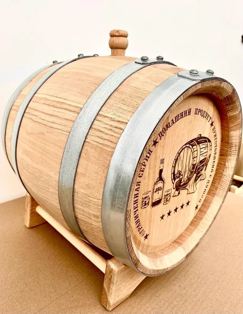Дубовая бочка применяется для выдержки крепких алкогольных напитков. Степень обжига влияет на вкусовые качества и аромат будущего Вашего шедевра. Средний обжиг подходит для большинства красных вин, коньяка, виски и фруктовых дистиллятов. Сильный обжиг придает нотки копчения и подходит для выдержки крепких алкогольных напитков, таких как бурбон, виски, кальвадос, любых бренди. Дубовая бочка от фамильных бондарей, обручи с оцинкованной стали, кавказский скальный колотый дуб естественной сушки от 1 года, очень приятный аромат.